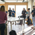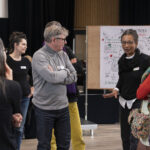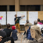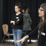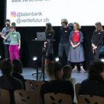 Am zweiten Tag standen Vernetzung und offener Wissensaustausch im Zentrum. Im Rahmen des Projektmarkts stellten sich Initiativen und Vorhaben aus dem Nachhaltigkeitsbereich vor. In Kleingruppen diskutierten die Projektleitenden mit den Teilnehmenden über konkrete Einsatz- und Umsetzungsmöglichkeiten ihrer Angebote und Werkzeuge in den Darstellenden Künsten.