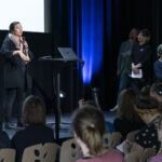 Am Nachmittag ging es in zwei partizipativen Versuchsanordnungen um das spielerische Erleben des Zusammenspiels von Ökologie und Theater: Mit Isabelle Vuong, Spezialistin für Foresight-Prozesse und Kunstkuratorin, imaginierten die Teilnehmenden eine nachhaltige Zukunft für das Ökosystem der Darstellenden Künste bis zum Jahr 2050. Mit MESHRUM und Studierenden der Kunsthochschule La Manufacture tauchten sie in eine Reihe immersiver Experimente zu den Themen Ökologie, Emotionen und Wirkung ein. Detailprogramm
